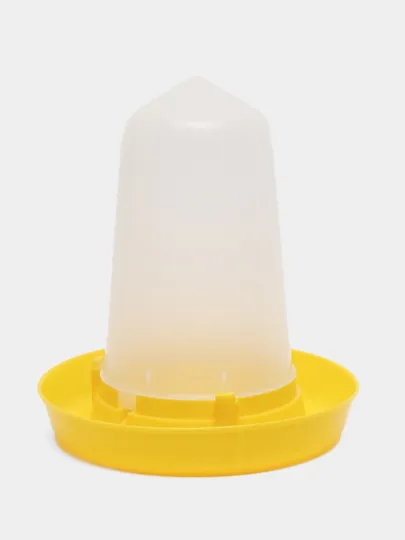 Поилка изготовлена из пластика, состоит из бачка-конуса и крышки-дна. Вода заливается в бачек,плотно закрывается крышкой и перевернув ставится на нее. Подходит для цыплят и взрослой птицы.